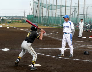 「金子誠」って誰?という人のために。金子誠選手はプロ野球、パ・リーグの「北海道日本ハムファイターズ」でレギュラー内野手として活躍する現役のバリバリのプロ野球選手なのです。そして昨年はパ・リーグ優勝と日本シリーズ優勝に貢献、今年は惜しくもリーグ優勝でしたが、もう10年も1軍で活躍しています。そしてこの金子誠選手は、なんとこの我孫子市出身でしかも湖北小→湖北中出身なのです。少年野球チームはカーニバルスジュニア(現 湖北フレンズ)に所属していたそうです。(湖北中卒業の後は、常総学園(茨城)に行き甲子園出場、で主将として活躍)そんなプロ野球選手が去年に引き続き今年も我孫子市の少年野球チームのために来てくれました。各チームの6年生が参加して行なわれます。