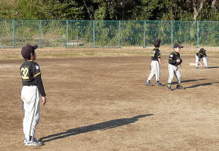 ファイターズ球場でみんなで食べるつきたてのお餅はとてもおいしいね。 6年生の本間キャプテンと足立りょうすけ。いよいよあと3ヶ月です。 この後、ファイターズ女子4人衆(6年=2人、3年=2人)がちょうど4人並んでいたのでカメラを向けたら拒否られました(苦笑) ファイターズの卒団生、湖北中の先輩も午前中の練習が終わってから遊びに来てくれました。左から、三上先輩、宇山先輩、吉川先輩、大出先輩。この後、葉山先輩もお餅を食べに来てくれました。監督からバッティングを教わりました。 このように子供たちにも餅つきをやらせてくれます。餅をつく前に、今年の抱負を一人一人言ってから餅をつきました。 お母さん方も餅つきに挑戦です。 臼の中のつきたてのお餅です。 つきたてのお餅を臼からトレイに移します。 それをこのように手で一口サイズにちぎります。これをお母さん方がお雑煮にしたり、磯辺焼きにしたり、きなこ餅にしたりします。 おいしそうなお雑煮です。 お雑煮もとてもおいしくて大人気でした。みんなお雑煮も磯辺焼きもきなこ餅もたくさんおかわりをしていました。 食べ終わったら、低学年と高学年に分かれて監督から今年初ノックを受けました。 ファイターズにはコーチが何人かいますがやはり監督のノックが一番さまになっていて格好いいと思います。 低学年のノックです。うまく取れて監督がOKを出した人から順にあがっていきます。 高学年のノックです。同じく監督がOKを出した人からあがります。 ノックの後は全員のベースランニングのタイム測定をしました。ファイターズでは定期的にベースランニングのタイム測定を行ない、みんな自己記録の更新を目指してがんばっています。 写真は、みきひろ(2年)。ベーランで、みんなの写真をたくさん撮りましたがほとんど失敗で、これがベストショットでした。 りょうた(6年)のベーラン。これもまあまあのショット。5年から野球を始めたりょうたですが、中学でも野球を続けるのかな? 足立りょうすけ(6年)のベーラン。これもいいショットでした。みんな自己記録更新できたかな? ベースランニングの測定が終わって午後3時半くらいに解散しました。