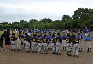 当日は新木小の隣の近隣センターに朝5時半集合。6時前に出発し、8時過ぎごろに目的地の袖ヶ浦市 百目木公園に到着しました。そして開会式直後の第1試合に勝利、お昼ごろに行なわれた第2試合は完全に相手のペースでしたが最終回でなんと2アウトからの逆転サヨナラ勝利でみんなで喜びました。ブロックで10チームのうち、3チームが全勝だったので、その3チームで1アウト満塁から開始されるサドンデスが行なわれましたが、敗れてしまい結局ブロック3位で終わりました。