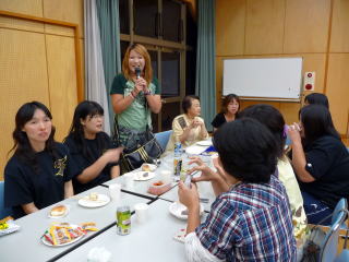 宴もたけなわでしたが近隣センターは夜9時閉館のため、8時40分頃で最後の締めです。最後は実川ヘッドコーチのエイエイオー!で締めました。子供たち、お母さん方、監督コーチのみんなで楽しむところが、子供たち、スタッフ、お母さん方が一体となってチームワークのいい新木ファイターズらしい、とても楽しい祝勝会でした。 |