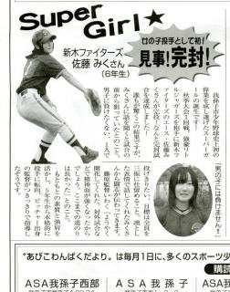 ※ 写真をクリックすると拡大写真が現れます。あびこわんぱくだより10/1号のみく記事です。 記事には、我孫子市少年野球史上初の偉業を成し遂げたスーパーガールの誕生です!とあります。女の子投手としては初完封だそうです。