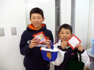 両チームキャプテン挨拶。キャプテンのさぶと小池なおきです。午前中は新木小でみんなでソフトボールを楽しみました。 試合開始です。バッターむー。ピッチャーみきひろママ。ブラックファイターズ、イエローファイターズ、ホワイトファイターズ、レッドタイガースの4チームに分かれてソフトボールをしました。 サンタクロースの格好をして打席に立つ柴田コーチ。 今日は12月25日のクリスマスですから。 ホームランを打ってベンチに戻る柴田コーチ。 ピッチャーじお、バッターみく。 トナカイのマスクをかぶって打席に入る金子コーチ。 応援する子供たちとお母さん方。 ゲームセット!試合終了です。 全身トナカイコスチュームで主審をする我孫子市少年野球審判部所属の柴田コーチ。 キャプテン挨拶。がおと小池なおき。 トナカイ柴田コーチピッチャーとキャッチャーサンタがおの親子 バッテリーです。 サンタがおを見守るがおパパトナカイの柴田コーチ。 今度はお母さんチームvs子供チームで対戦です。お互いに礼。 カズママvsカズの親子対決です。 お母さんチームのベンチです。 最後の試合のお母さんチームvs子供チームの試合が終わりました。 お母さんチームvs子供チームは8-0で子供チームの勝ちでした。これで午前中のレクは終了です。みんな楽しかったね! 午前中の新木小でのソフトボールが終わってから一旦帰宅し家で昼食を取ってから午後1時頃に新木行政サービスセンターに集まりみんなでクリスマス会をしました。 団長挨拶。 クリスマス会の会場。 みんなで持ちよったプレゼント交換用のプレゼントです。 ジュースで乾杯です。 まずはお母さん方からみんなへのプレゼントです。何が入っていたのかな? そしてお楽しみのくじ引きです。1年生のいっぺいです。 特賞のおおさくと3等のなおや。おおさくの特賞は監督の千本ノックで、なおやの3等は加藤コーチのお勉強付き添い指導券でした!これで成績アップ間違いなし? 2等の小池なおきと1等のがおです。2等は柴田コーチによるバリカン丸刈り坊主無料券でした。これで野球部で坊主にするときに床屋に行かなくてすむかな? 3年生トリオのこまっちゃん、トーマ、こうへい。くじ引きで引いたのは、「やりたい守備のポジションを大きな声で」と「尻文字を書く」でした。 これまで体験入団で参加の2年生、こまばくんも午前から参加でした。ついに入団してくれました!やったね! こちらは 「うんちょこちょこびー!をみんなの前で3回」 が当たったみんなでした。おおさく弟は兄貴と違っておしゃべりでひょうきんで、元気よくウンチョコチョコビー!をしてました。あとで兄貴に「みんなの前でできるか?」と聞いたらできないと言ってました。兄弟で性格が違うケースはよく見ます。 こちらは尻文字を書くが当たったみんなです。お尻で「ファイターズ」と書きました。 尻文字を書くのを前から見た絵です。写真に写りたがらないしがが写っています。 こちらはやりたいポジションを大きな声でが当たったみんなです。むーはファーストをやりたいとのこと。 1等賞が当たったがお。1等賞は実川コーチからの愛のプレゼントでした(笑) 今度はビンゴ大会です。5年のみきひろ、りゅうや、ゆうと、おの。 お目当ての数字を呼ばれガッツポーズのとき。 ビンゴに当たった順にみんなが持ってきたプレンゼントを選びます。 最後に監督挨拶です。 午後3時前にクリスマス会が終わり、新木行政サービスセンターを出る子供たち。楽しいクリスマス会でした。企画してくれたお母さん方に感謝です。 夕方からは焼肉でん我孫子根戸店で団長、監督コーチ、お母さん方と子供たちでファイターズ忘年会です。お店の送迎バスで新木駅とヤックスに集合して向かいました。今回は焼肉店ということもあり子供も参加可でした。焼肉を食べる子供たち。手前は2009年度卒団生のたいごとれい。みんなで食べまくりだぁ! 忘年会最後の締めの挨拶です。忘年会幹事の加藤コーチ夫妻大変お疲れ様でした! 今回29人参加で401人前もの焼肉をたいらげたそうです! 今年一年お疲れ様でした。来年もがんばりましょう!