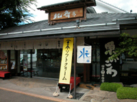 | 小布施の有名菓子店。名物の栗を使ったさまざまなお菓子を売ってます。近くに直営軽食・喫茶店もあり。 店構え(左)、くりは奈(中)、マロンアイスクリーム(右) |