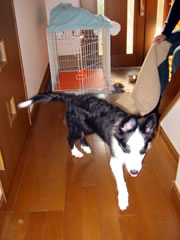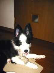 犬マットで気を惹いてもらって激写。この日もエランは歯が抜けたらしく、マットは血まみれ。