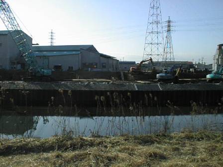 岩倉市希望の家あたりの、左岸の護岸工事です。