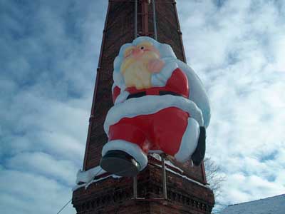 添付は、名寄土管工業の煙突に立つ、名物のサンタ君。彼は、一日1mずつ登りつめ、12/24の夜更けにてっぺんに到達するそうな。僕ちゃんの靴下には「お神酒」を入れてちょーだいな、とお願いしてきたよぉー。