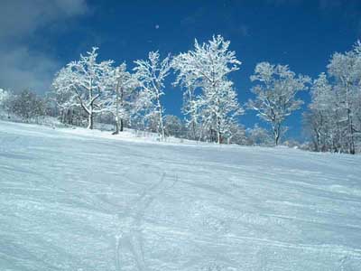 この後、登りのリフトの上で、不思議な感覚に酔ってしまったんだよなぁー。どうやってこのスキー場に来たのかなぁー。さっきの第一走は、どう滑って来たのかなぁー、と一瞬、記憶が定かでない。何だか変です、夢遊病者の感覚なんですよ。 初すべりへの感情の高まりもあってか、こんな気分に浮遊したのも始めての経験です。後で、ロッジの事務所でこのことを話したら、さるお方から、アルツハイマーの話が出たが。さては先日、中沢大教授と敢えて所望した、あのビーフにヤラれたかっ!!。まあスキーの大先生と心中だったらハッピーかっ、と思い直した次第デース。