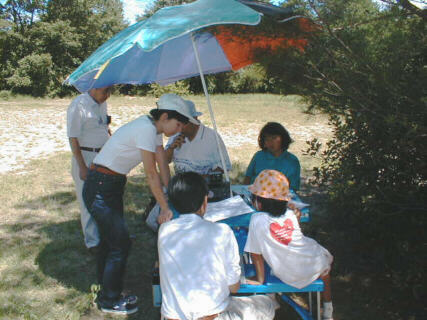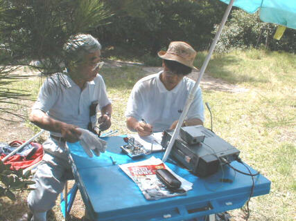 好天に恵まれ、おしゃべりをしながらバーベキューを楽しみました。移動運用でそれどこではなかった方もおられました。途中、ガールスカウトの一団、10数名が移動運用を見学され、アマチュア無線をPR。6時間はたいへん短く、JARL論議をしているうちに夕方4時になってしまいました。このような話題を提供していただいたJARLには感謝?涼しくなった夕方、もう少しハイキングを楽しみたいとの声もありましたが、自然をいちばん楽しんだのは3人の小学生でした。写真をご覧ください。松本さん飛び入り参加、JE3USO撮影。