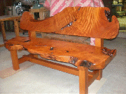 ◎この長椅子はお客様から持参された数十年前の、変形座卓の天板を