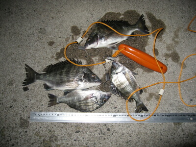 ●夕マズメになって頻繁にアタリがあり、特にフェリーが2隻連続して入港した後はほぼ入れ食いかと思われる状況になったが、残念エサ切れ。最後の1投でもチヌを掛けたが、ハリ先の少し曲がってしまったハリを取り替えずにやってしまったため、案の定引き寄せる途中でバラシとなってしまった。ハリの取り替えは、決してズボラであってはいけないことを改めて痛感したしだい