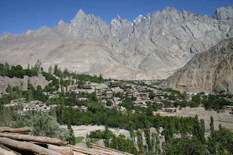 標高2500mのマチュルー村は、カラコルム山脈の間にある、小さな小さな村です。村からは、マッシャーブルム峰(7821m)が良く見えます。その他の山々も、無名峰であっても標高は4000m〜5000m級です。
