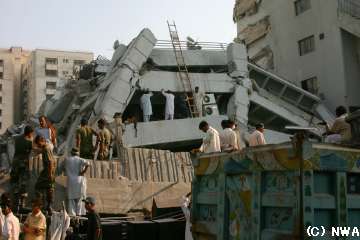 2005年10月8日8時50分40秒(パキスタン時刻)、マグニチュード7.6の地震が、パキスタン北部を襲いました。イスラマバードでは、マルガラ・タワーと呼ばれる12階建てのマンションが崩壊しました。 亡くなられた方々のご冥福をお祈りいたします。