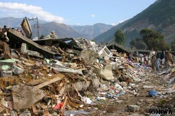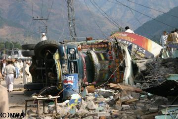 バラコットの街へ入ったとたん、そこだけが巨人か何かに踏みつぶされたように跡形もなく建物が倒壊していました。そして、崩壊した建物の下には放置されたままの遺体が。遺体からただよう死臭が街全体を覆っていました。