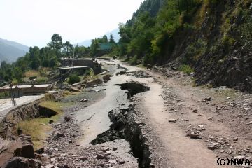 峠の途中から、ポツンポツンと被災者のテントらしきものが見え始め、バラコットに近づくにつれ、道路には大きな亀裂が走り、地滑りによる道路の寸断が見られました。