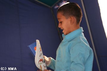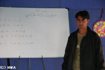 テント村の小学校には、5歳から15歳までが通っています。
