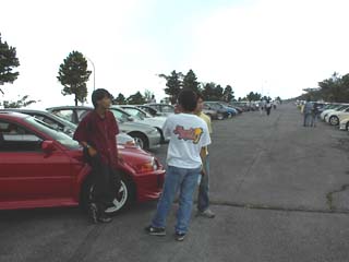 赤いエボの脇にいる人がオーナーのはんくさんです。