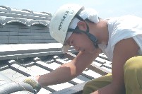 疾風のように屋根を歩み工事をしているかと思えば、事務所においてはインターネットを使いこなす。職人としての技と日々移り変わる情報を見逃さない目は、まさにハイテク職人。サイバー忍者といったところだろう。 |