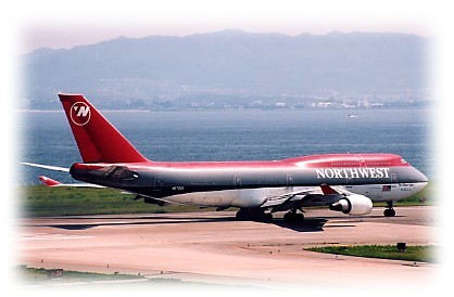 (上)ノースウェスト航空機。アメリカへ飛び立ちます。