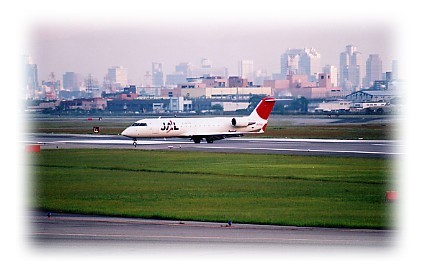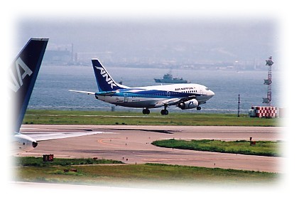 (上)エアニッポン機が関西国際空港へ着陸します。