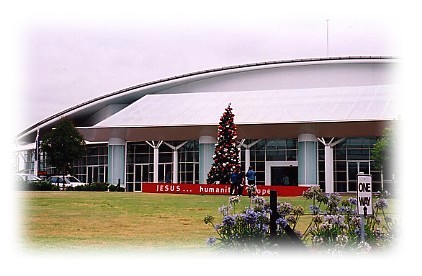 教会に到着!とにかく大きい。そしてきれいに整備された広大な駐車場。そして、建物だけで3000人を収容できる施設。オープニングセレモニーのときには、オーストラリアの首相も来賓として出席したそうです。