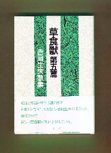 𠮷岡生夫第5歌集。1998年3月30日、柊書房発行。定価2,000円。体裁四六版。目次2頁、本文175頁、「あとがき」1頁。1頁2首組。歌数317首。装幀・近藤浩子。 帯文より/暖流と寒流の出会う潮の目で狂歌師・𠮷岡生夫と歌人・𠮷岡生夫が出会った。混沌の中で新しい草食獣が生まれようとしている。 参考図書/古島哲朗『現代短歌を「立見席」から読むⅡ』(ながらみ書房・2001年)/武藤雅治『抒情の水位』(ながらみ書房・2000年) |